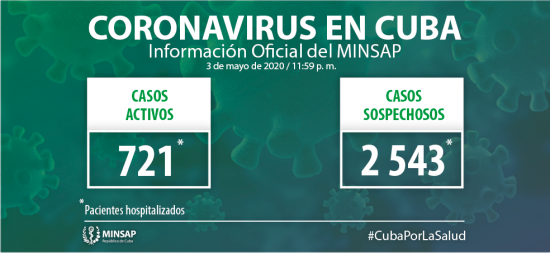 Al cierre de la jornada anterior, Cuba reportó 38 nuevos casos positivos al coronavirus SARS-CoV-2, todos cubanos, con lo cual ascendieron a mil 649 los infectados en la Isla. Se produjo un nuevo deceso, para un total de 67 fallecidos. Hay 2 mil 744 ingresados en vigilancia clínico-epidemiológica, y otras 6 mil 515 personas se vigilan en sus hogares, desde la Atención Primaria de Salud. Sancti Spíritus no reporta nuevos casos CUBA ANTE LA COVID-19 (I) (II) (III) (IV)Continuar leyendo «COVID-19 en Cuba: 38 nuevos positivos; ascienden a mil 649 los confirmados. 753 permanecen hospitalizados»